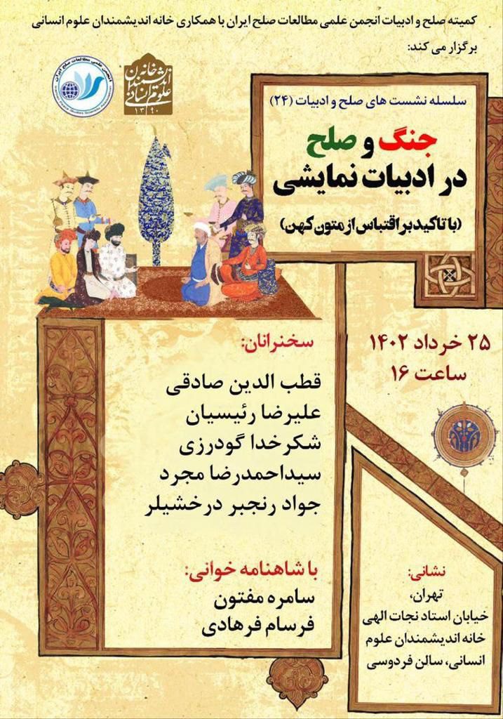 “آژنگ نیوز”:نشست”جنگ و صلح در ادبیات نمایشی”برگزار می شود.