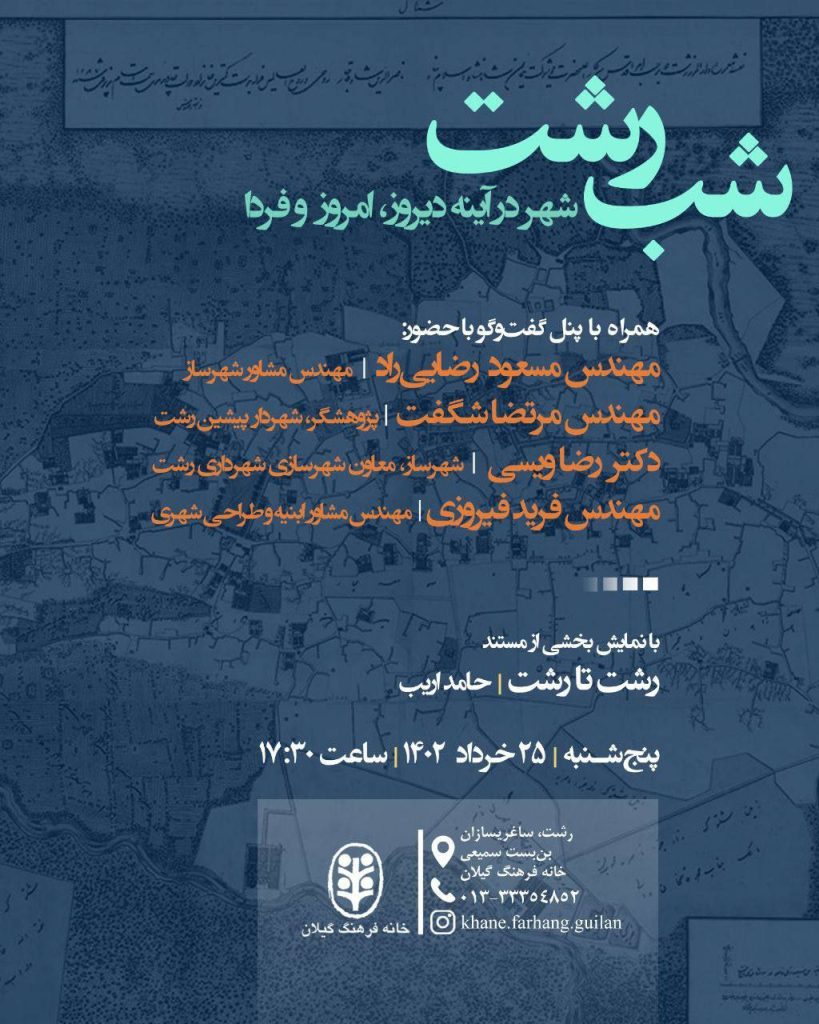 “آژنگ نیوز”:نشست “شب رشت” از مجموعه “شهر در آینه دیروز، امروز، فردا “برگزار می شود.