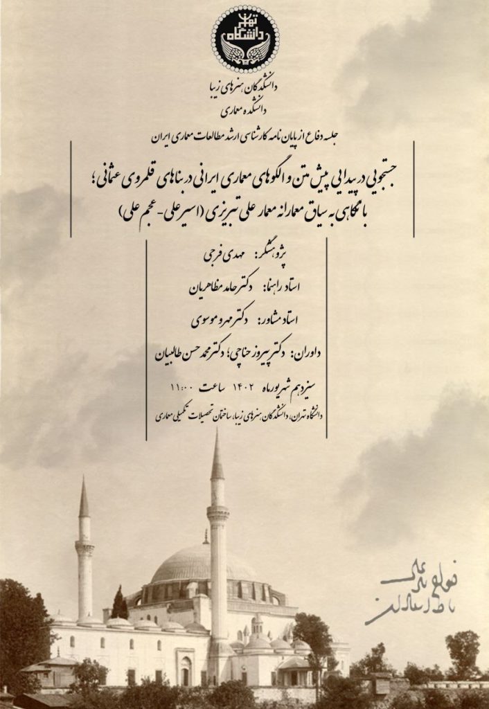 “آژنگ نیوز”:نشست ارایه پایان نامه با عنوان”جستجویی در پیدایی پیشمتن و الگوهای معماری ایرانی در بناهای قلمروی عثمانی؛
