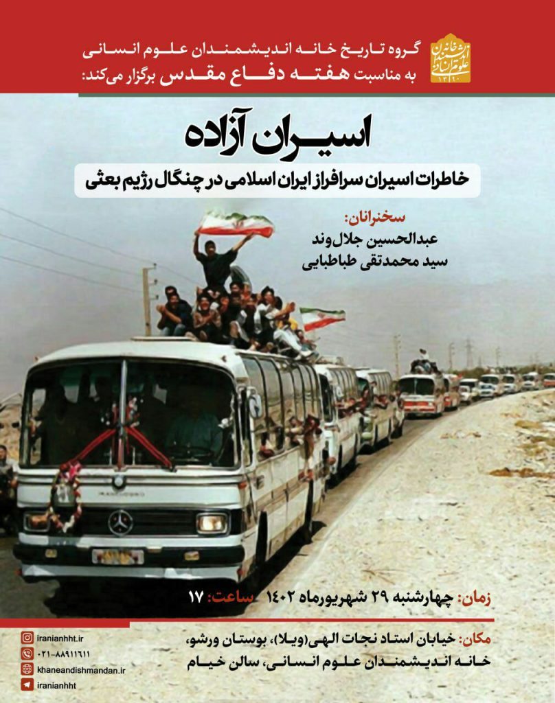 “آژنگ نیوز”:نشست؛اسیران آزاده؛ خاطرات اسیران سرافراز در چنگال رژیم بعثی؛برگزار می شود.
