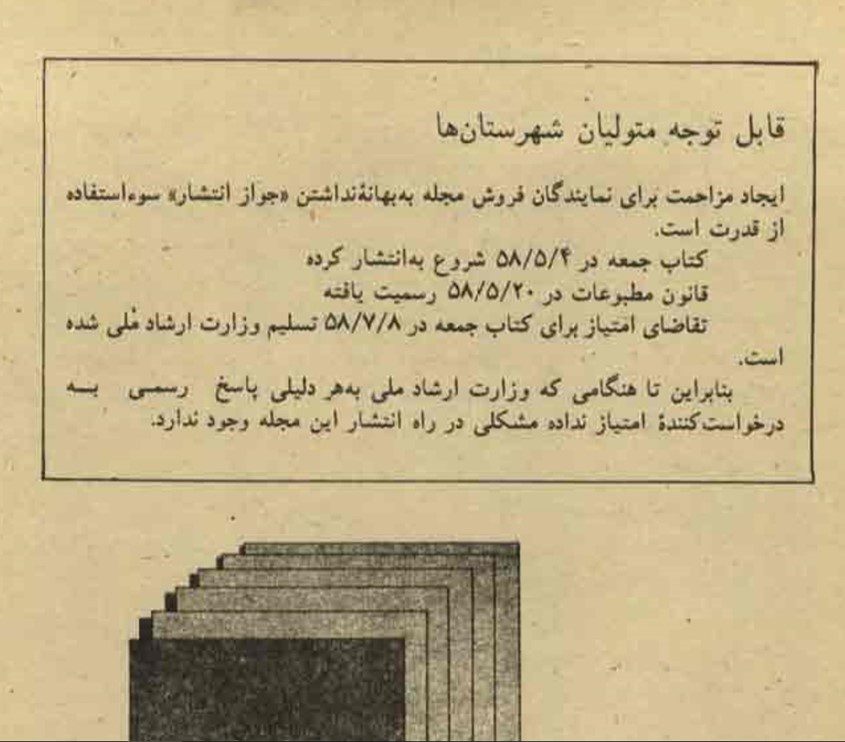 “آژنگ نیوز”:نشریه “کتاب جمعه” در سال ۵۸خورشیدی در مورد توزیع آن مجله در شهرستانها دچار مشکلاتی شده بود که در یک توضیح در داخل صفحات خود به شرح مندرج در تصویر به آن اشاره کرده است.
