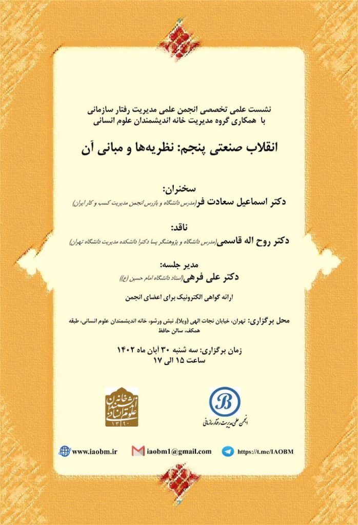 “آژنگ نیوز”:نشست”انقلاب صنعتی پنجم: نظریه ها و مبانی آن”برگزار می شود.