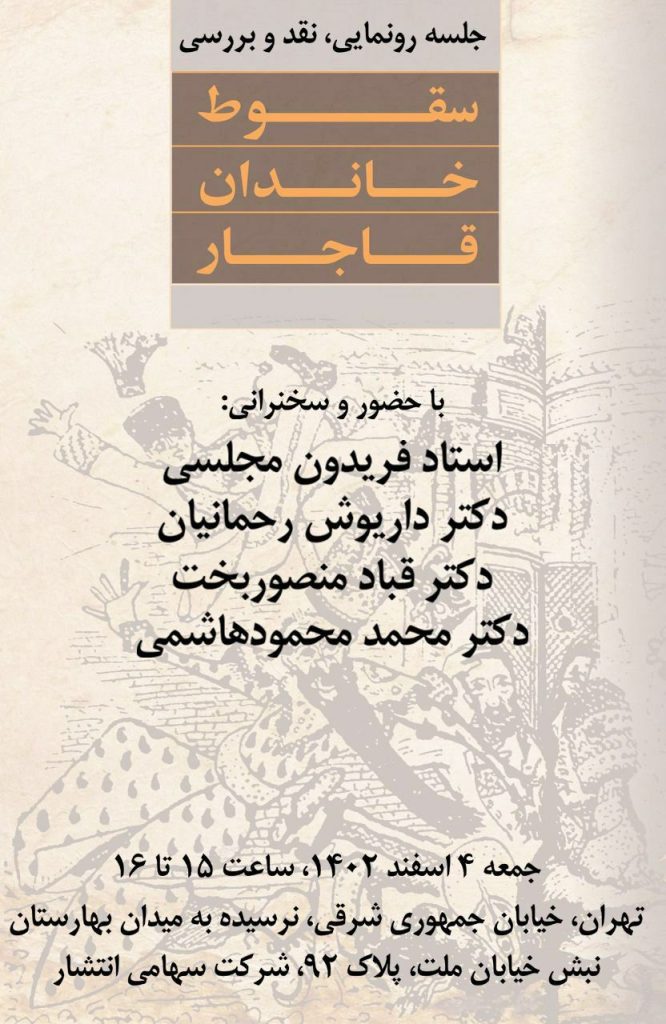 “آژنگ نیوز”: نشست نقد و بررسی کتاب سقوط خاندان قاجار برگزار می شود.