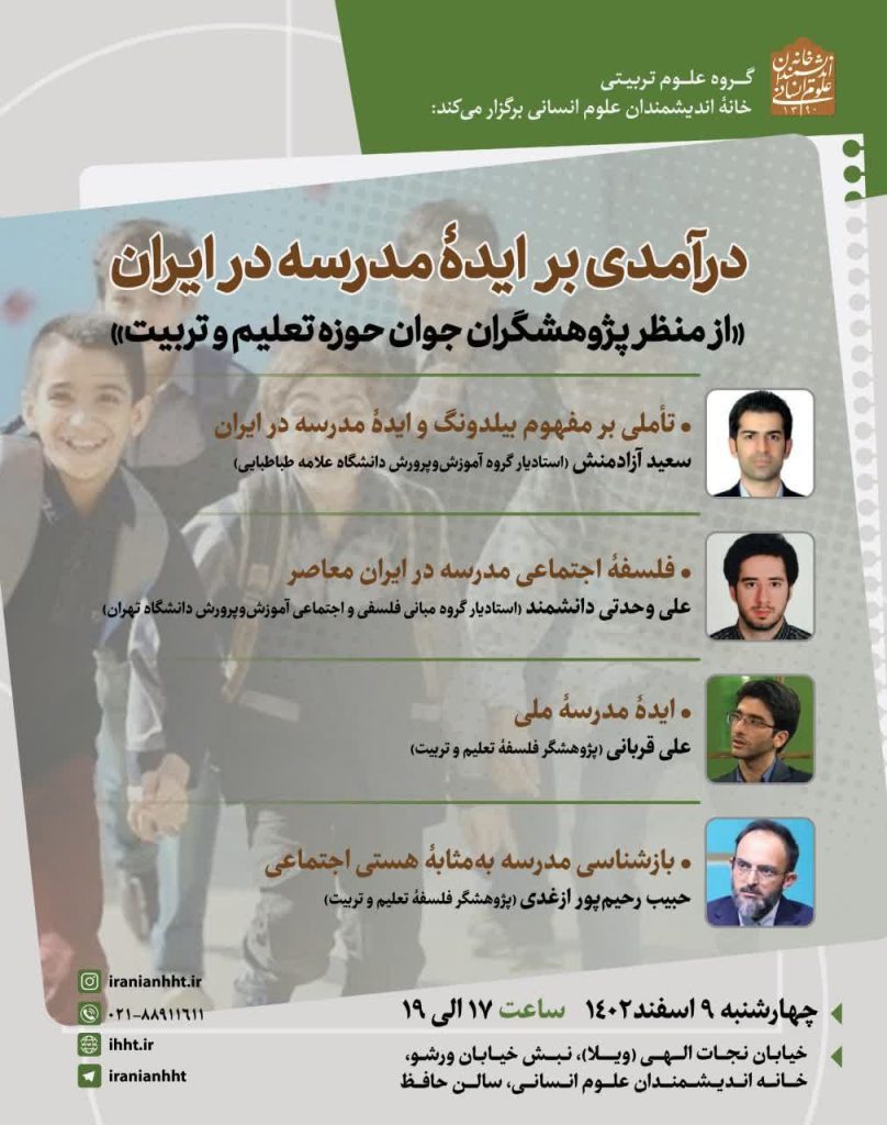 “آژنگ نیوز”: نشست “ درآمدی بر ایده مدرسه در ایران“برگزار می شود.