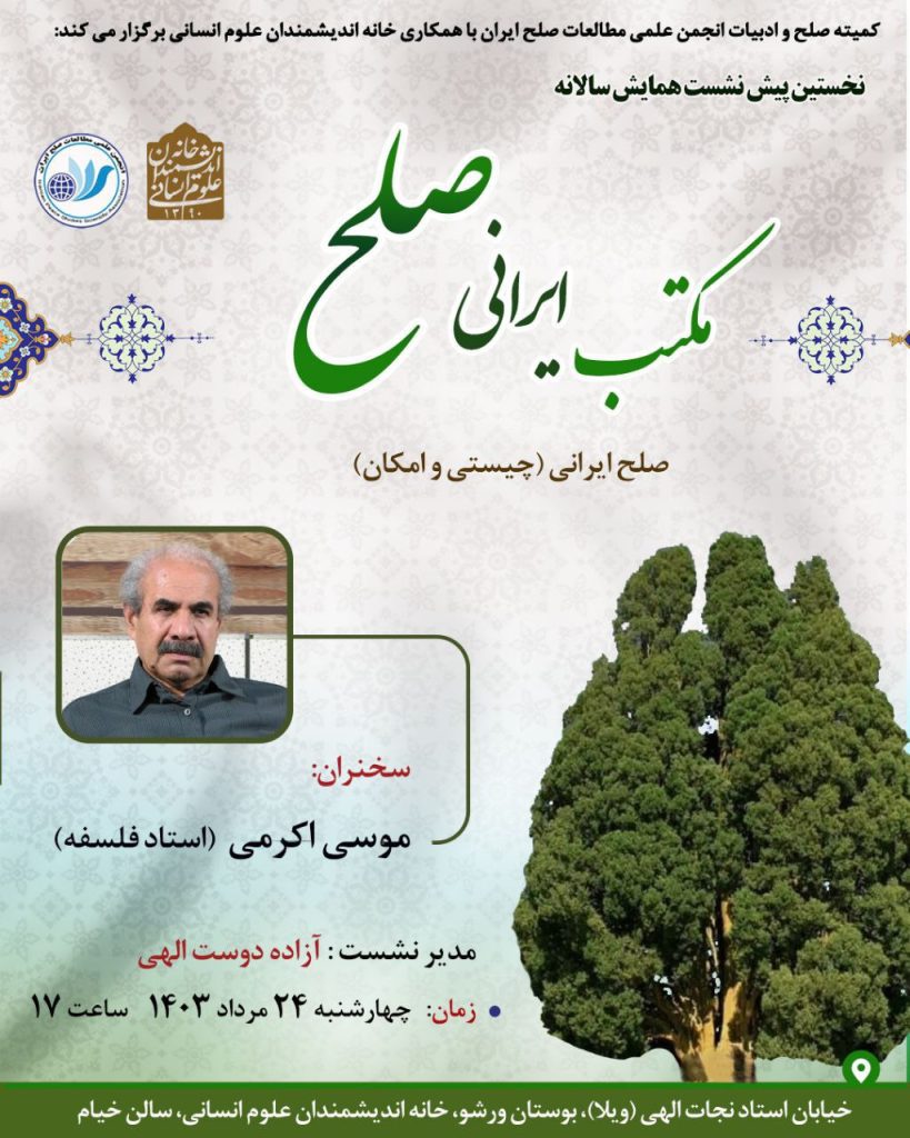 “آژنگ نیوز”: نشست مکتب ایرانی صلح؛ نخستین پیش نشست همایش سالانه انجمن علمی مطالعات صلح ایران برگزار می شود.