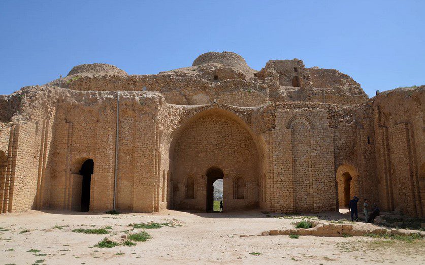 “آژنگ نیوز”: تصویر کاخ پادشاه اردشیر اول (ح. ۲۲۴-۲۴۰ میلادی)، بنیانگذار امپراتوری ساسانی ایران در این صفحه دیده می شود. این کاخ در حدود سال ۲۲۴میلادی در مقابل شهری که او بنا کرده بود، یعنی اردشیر خره (“شکوه اردشیر”) در ساحل شاخه غربی رودخانه تنگاب ساخته شد.