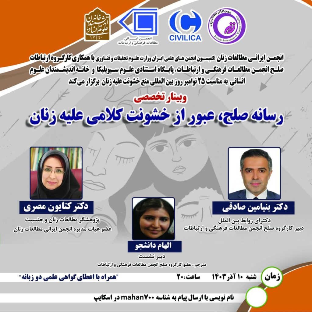 “آژنگ نیوز”: نشست رسانه صلح، عبور از خشونت کلامی علیه زنان برگزار می شود.