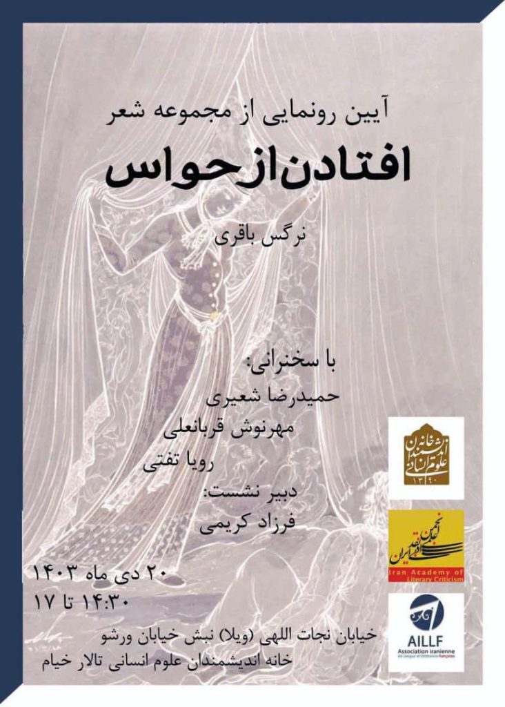 “آژنگ نیوز”: آیین رونمایی از مجموعه شعر افتادن از حواس برگزار می شود.