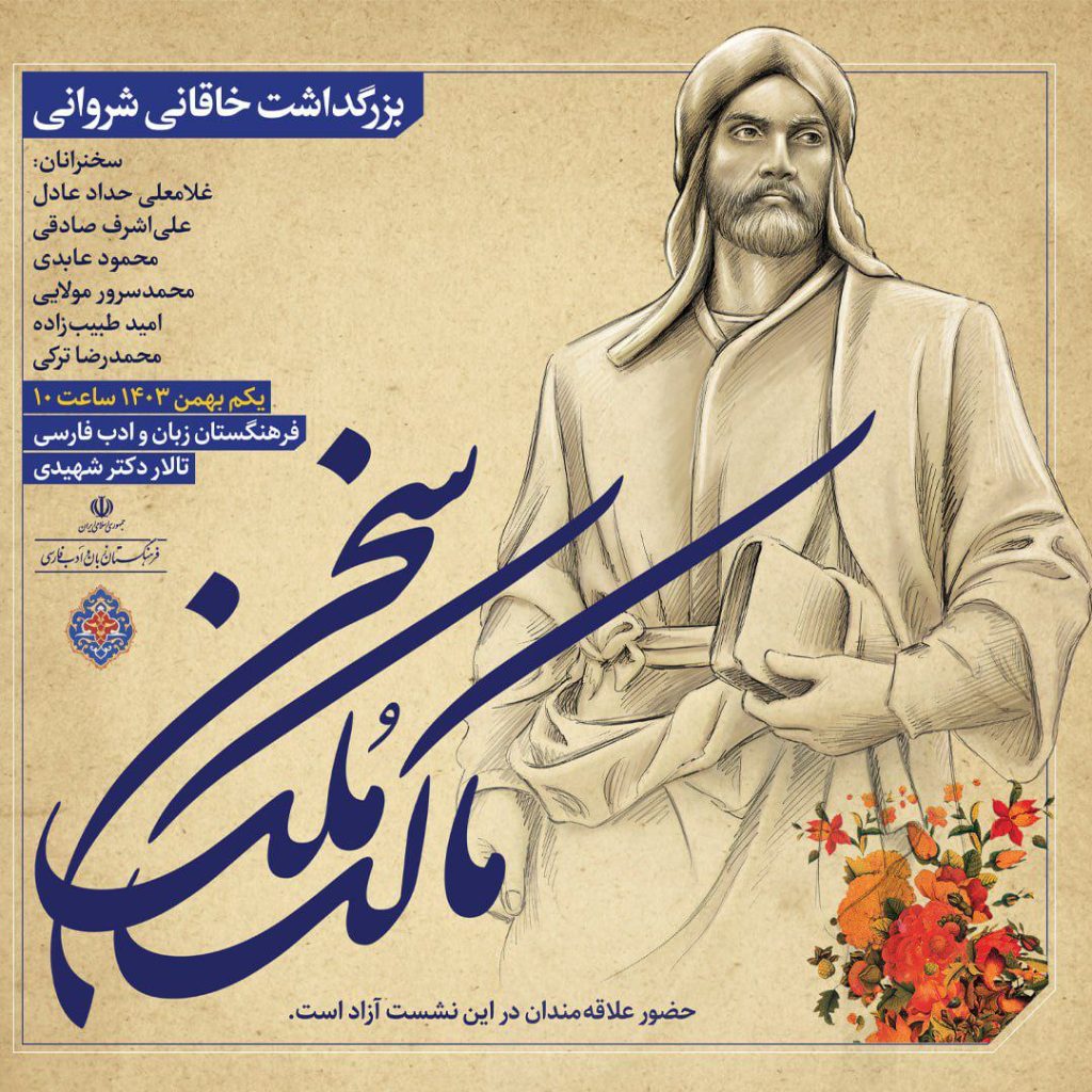 “آژنگ نیوز”: آیین بزرگداشت خاقانی شروانی، دوشنبه یکم بهمنماه ۱۴۰۳، در فرهنگستان زبان و ادب فارسی برگزار میشود.