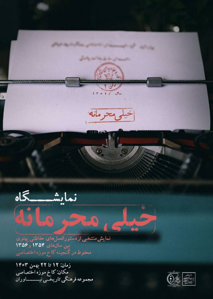 “آژنگ نیوز”:نمایشگاه خیلی محرمانه نمایش منتحبی از دستورالعملهای حفاظتی پهلوی در سالهای۱۳۵۴ و ۱۳۵۶ برگزار می شود.این نمایشگاه که از ۱۲ بهمن ماه شروع شده تا ۲۲ بهمن ماه سال ۱۴۰۳ خورشیدی ادامه دارد.