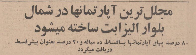آغاز ساخت آپارتمان در بولوار الیزابت (کشاورز کنونی)در سال ۱۳۴۷ خورشیدی