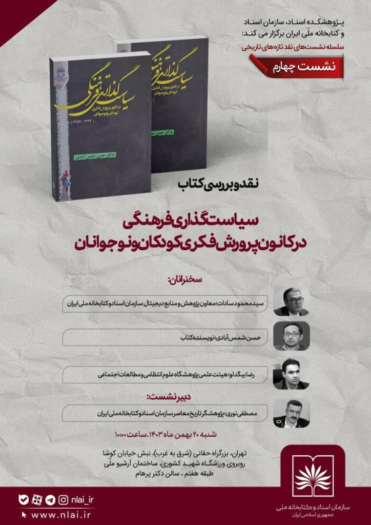 مکان برگزاری: آرشیو ملی ایران، طبقه ۷، سالن پرهام