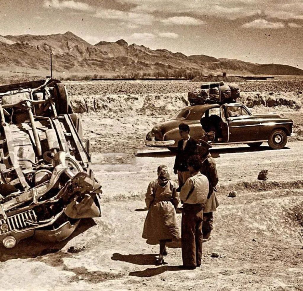 “آژنگ نیوز”:تصویر تصادف قدیمی در جاده اصفهان به شیراز در این صفحه دیده می شود.زمان تهیه این عکس اوایل دهه ۳۰ خورشیدی است.