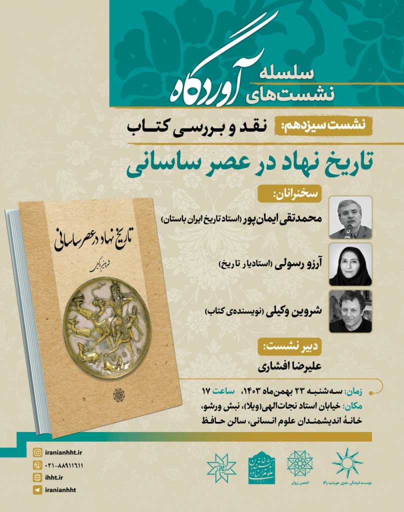 “آژنگ نیوز”: نشست نقد و بررسی کتاب تاریخ نهاد در عصر ساسانی از سلسله نشست های آوردگاه؛برگزار می شود.