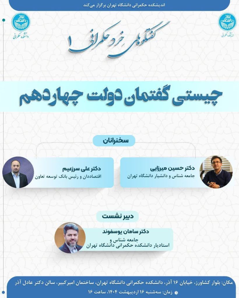 آدرس: خیابان ۱۶ آذر، دانشکده حکمرانی دانشگاه تهران، سالن دکتر عادل آذر
