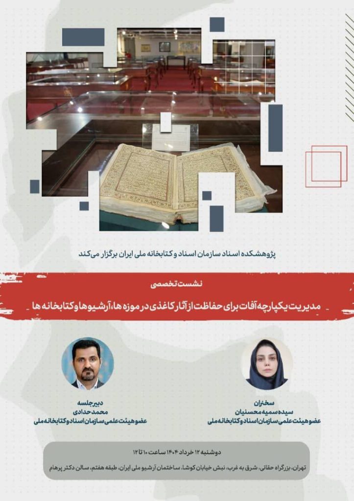 “آژنگ نیوز”: نشست تخصصی ” مدیریت یکپارچه آفات برای حفاظت از آثار کاغذی در موزهها، آرشیوها و کتابخانهها”