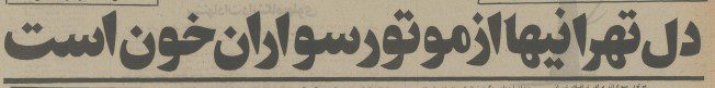 “آژنگ نیوز”:تاریخچه آزار دهنده موتور سیکلت سواری در تهران از زمان بکارگیری آن و از سال ۱۳۵۴ خورشیدی یعنی دقیقا نیم قرن قبل به عنوان یک مشکل اجتماعی ؛آغاز شده است. گزارشی که مطالعه میکنید بدون یک واو اضافه و کم مربوط به روزنامه اطلاعات در ۲۲ شهریور سال ۱۳۵۴ خورشیدی است. انگار که همین دیروز تهیه شده است: