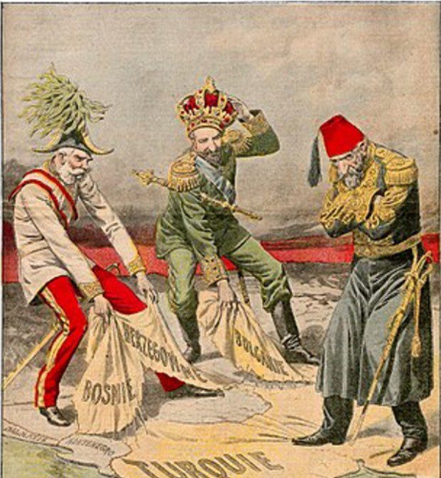 اگرچه بوسنی و هرزگوین در سال ۱۹۰۸ هنوز رسماً تحت کنترل سلطان عثمانی بود، اما اتریش-مجارستان از زمان کنگره برلین در سال ۱۸۷۸، زمانی که قدرتهای بزرگ اروپا به سلطنت دوگانه حق اشغال دو استان را دادند، با عنوان قانونی باقی ماندن در کنار ترکیه، این استانها را اداره میکرد. از آنجایی که این استانها مورد طمع بسیاری بودند – در واقع، هم اتریش و هم مجارستان، بوسنی و هرزگوین را برای خود میخواستند – این تصمیم کمابیش یک راه حل موقت برای حفظ تعادل ظریف قدرت در اروپا بود. برای پیچیدهتر کردن اوضاع، جمعیت عمدتاً اسلاو این دو استان جاهطلبیهای ملیگرایانه خود را داشتند، در حالی که اسلاوهای همسایه آنها در صربستان در همسایگی، آرزوی الحاق آنها را برای پیشبرد جاهطلبیهای پان اسلاویستی خود داشتند.