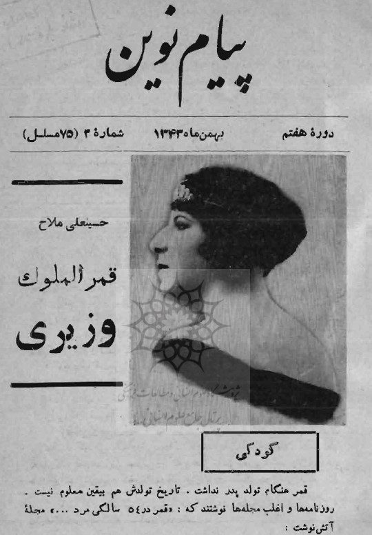 شماره سوم مجله پیام نوین در بهمن ماه سال ۱۳۴۳  خورشیدی انتشار یافته است.این شماره به طور کامل به زندگینامه قمر الملوک وزیری اختصاص دارد.